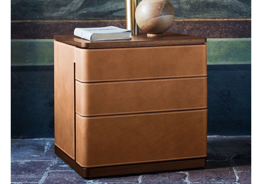 Fidelio Notte è un comodino firmato da Roberto Lazzeroni per Poltrona Frau. Il design è volutamente asciutto, i materiali preziosi. Dettagli funzionali diventano elementi estetici fortemente caratterizzanti, come le maniglie a gola che segnano graficamente le superfici. Intenso anche il contrasto fra i toni caldi e scuri del cuoio e del legno per gli esterni, e l’esplosione luminosa dell’acero naturale che si svela nei cassetti.
