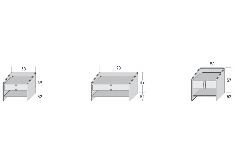 | Dimensioni | 58 x 52 x H 49 cm; 90 x 52 x H 49 cm; 58 x 52 x H 57 cm. |