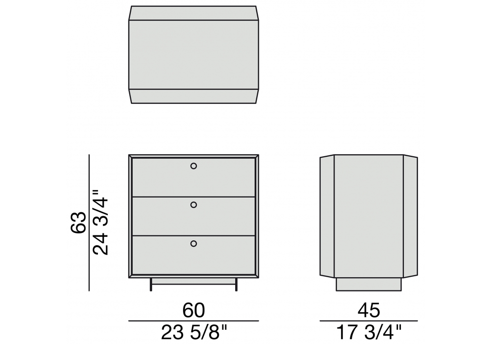 Sonja Night 2 firmato da Gino Carollo per Porada è un comodino in noce canaletta con tre cassetti push pull ad estrazione totale. Frontali dei cassetti in legno oppure rivestiti in cuoio o in specchio fumè. Base in metallo finitura Bronzoro.