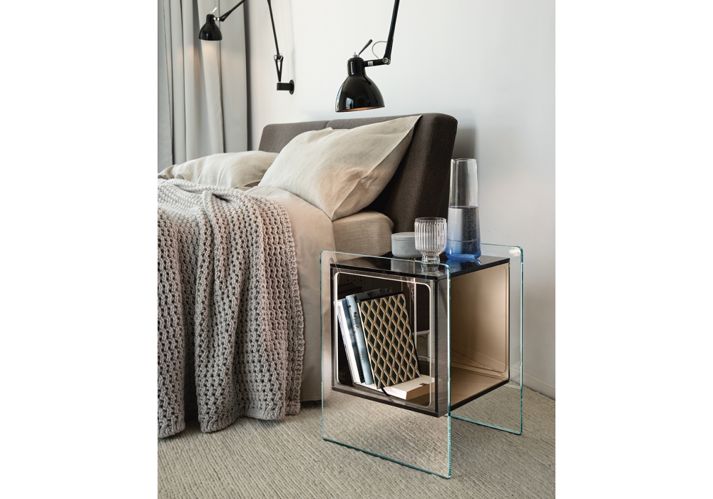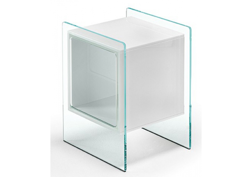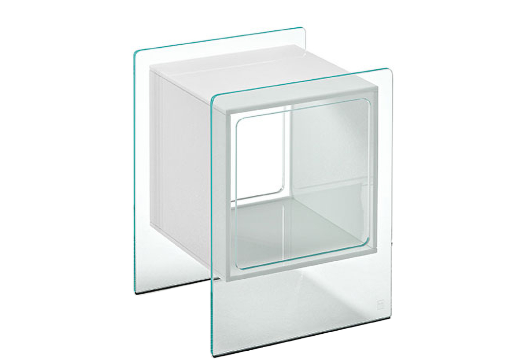 Magique Cubo firmato da Studio Klass per Fiam è un comodino con struttura e cubo contenitore realizzati in vetro. Disponibile in diverse finiture.