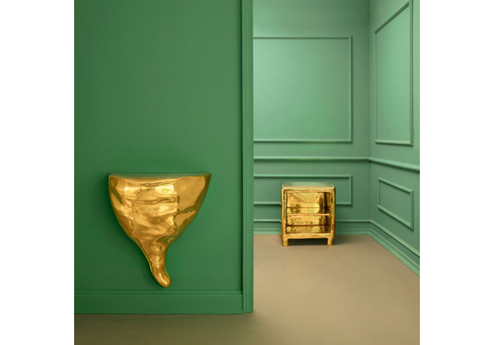 Cheer firmato da Scarlet Splendour è un comodino realizzato in ottone.