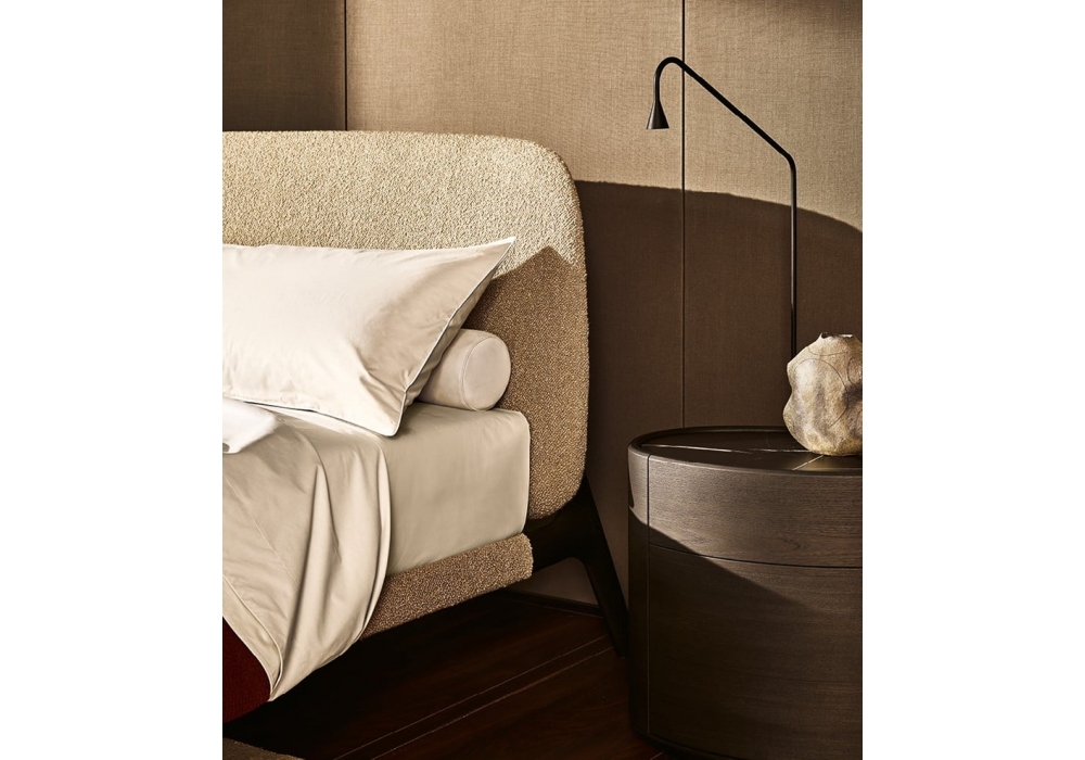 kelly firmato da Emmanuel Gallina per Poliform è un comodino con struttura in legno impiallacciato e piano disponibile nella finitura laccato opaco o lucido, rivestito in cuoio o marmo opaco o lucido.