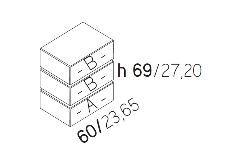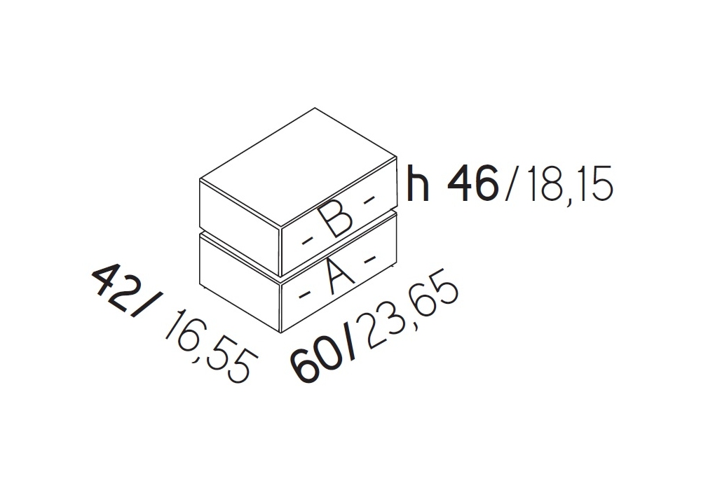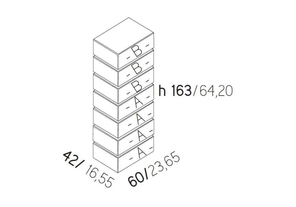 | Dimensioni | • 60 x 42 x H 46 cm; • 60 x 42 x H 69 cm; • 60 x 42 x H 93 cm; • 60 x 42 x H 116 cm; • 60 x 42 x H 140 cm; • 60 x 42 x H 163 cm |