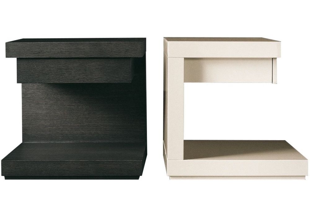 Cluny firmato da Andrea Parisio per Meridiani è un comodino con cassetto e struttura in legno. Disponibile in legno rovere tinto, lacca opaca o lucida.