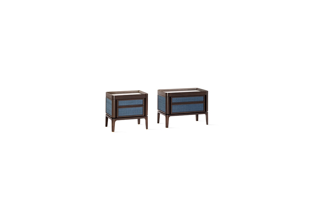 Full firmato da Roberto Lazzeroni per Ceccotti Collezioni è un comodino realizzato in massello di noce canaletto, frontali dei cassetti e fianchi rivestiti in noce canaletto, ebano, tessuto, pelle o laccati. Piano in legno, vetro colorato o marmo.