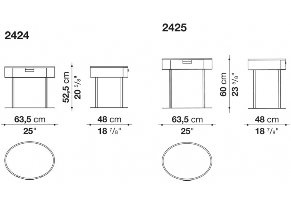 | Dimensioni | 63.5 x 48 x H 52.5 cm - 63.5 x 48 x H 60 cm. |