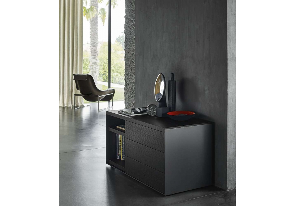 Surface firmato da Vincent Van Duysen per B&B Italia è una collezione di contenitori con struttura, frontale cassetto, ripiano fisso ed estraibile in rovere grigio, rovere chiaro spazzolato, rovere nero spazzolato o rovere fumigato. Zoccolo e fianchi verniciati nickel bronzato. Inserto verniciato satinato o lucido.
