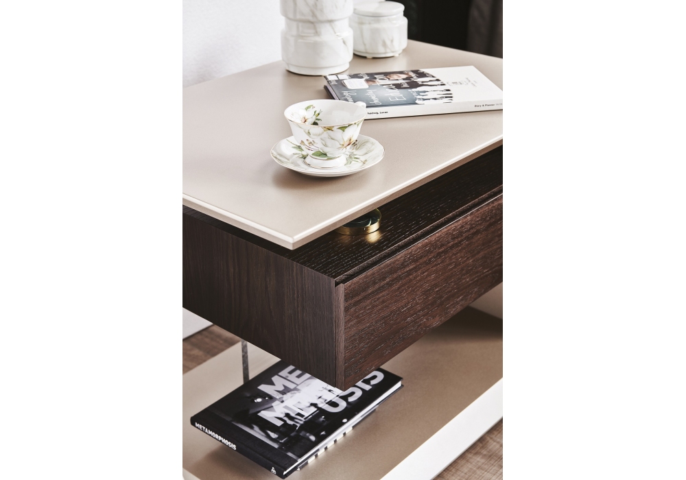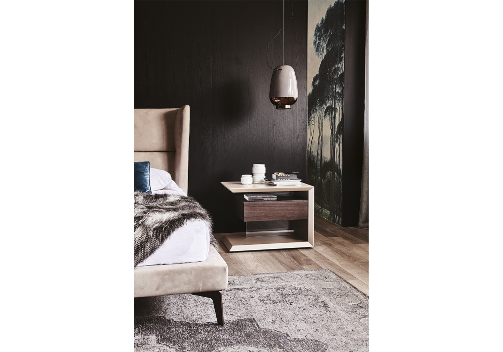 Biagio firmato da Paolo Cattelan per Cattelan Italia è un comodino con cassetto in noce Canaletto o rovere bruciato. Struttura laccata goffrata disponibile in tre finiture.