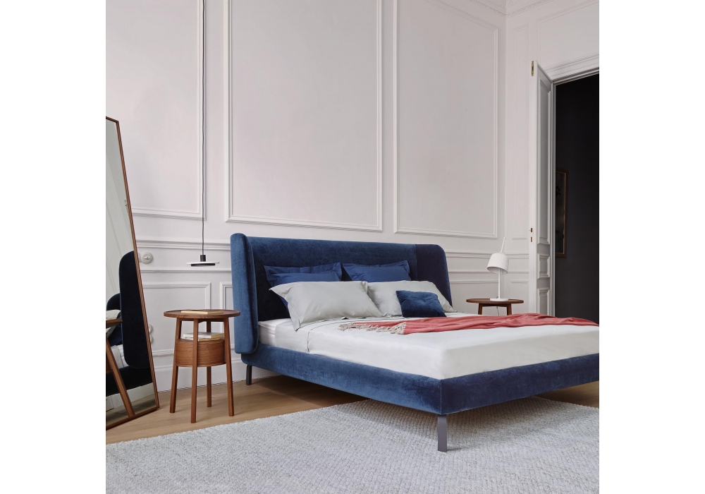 Episode firmato da Marie Christine Domer per Ligne Roset è un comodino con struttura, gambe e piani in noce americano massello tinto naturale. Cintura in multistrato impiallacciato noce, parte interna e traverse laccate grigio piombo. Con o senza anta push-pull.