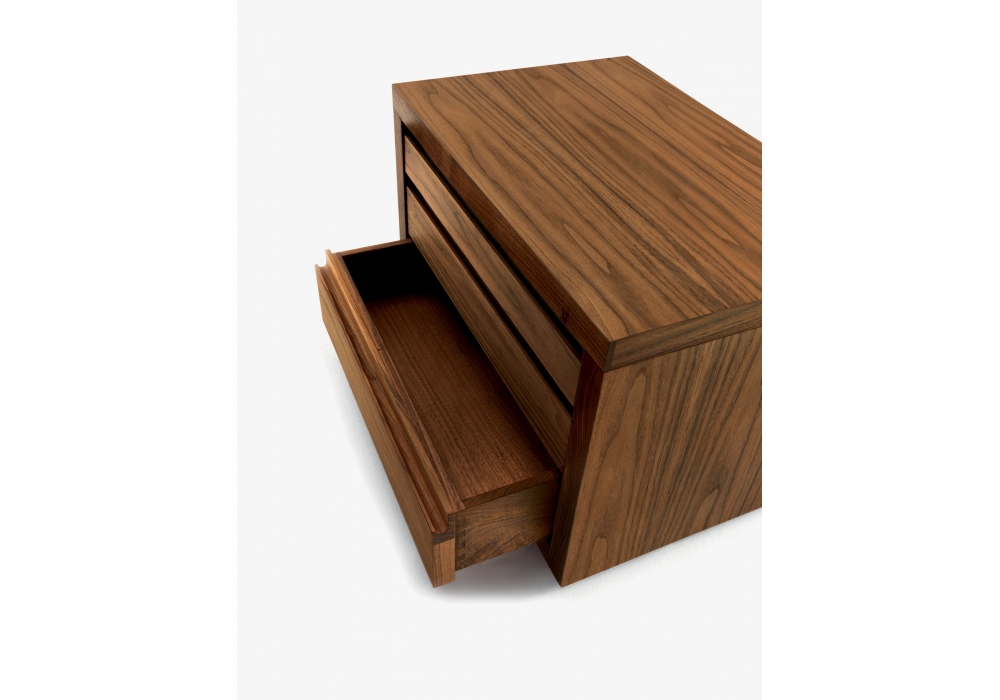 Kyoto 5 firmato da C.R.&S. Riva 1920 è un comodino in listellare impiallacciato, con 3 cassetti con frontali in massello e realizzati con tradizionale incastro a coda di rondine.