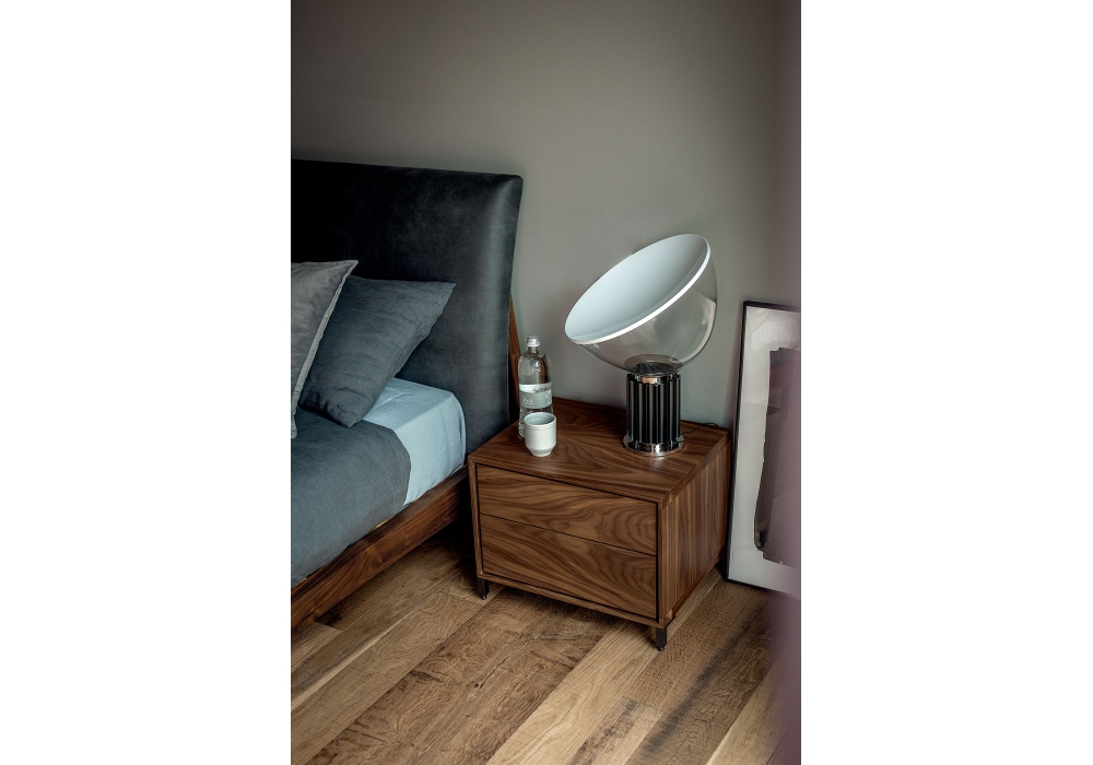 Rialto Night Fly firmato da Giuliano Cappelletti per Riva 1920 è un comodino in listellare e legno massello, con 2 cassetti realizzati con tradizionale incastro a coda di rondine.