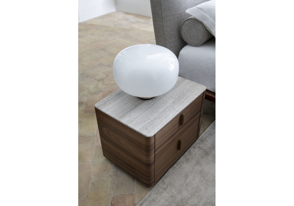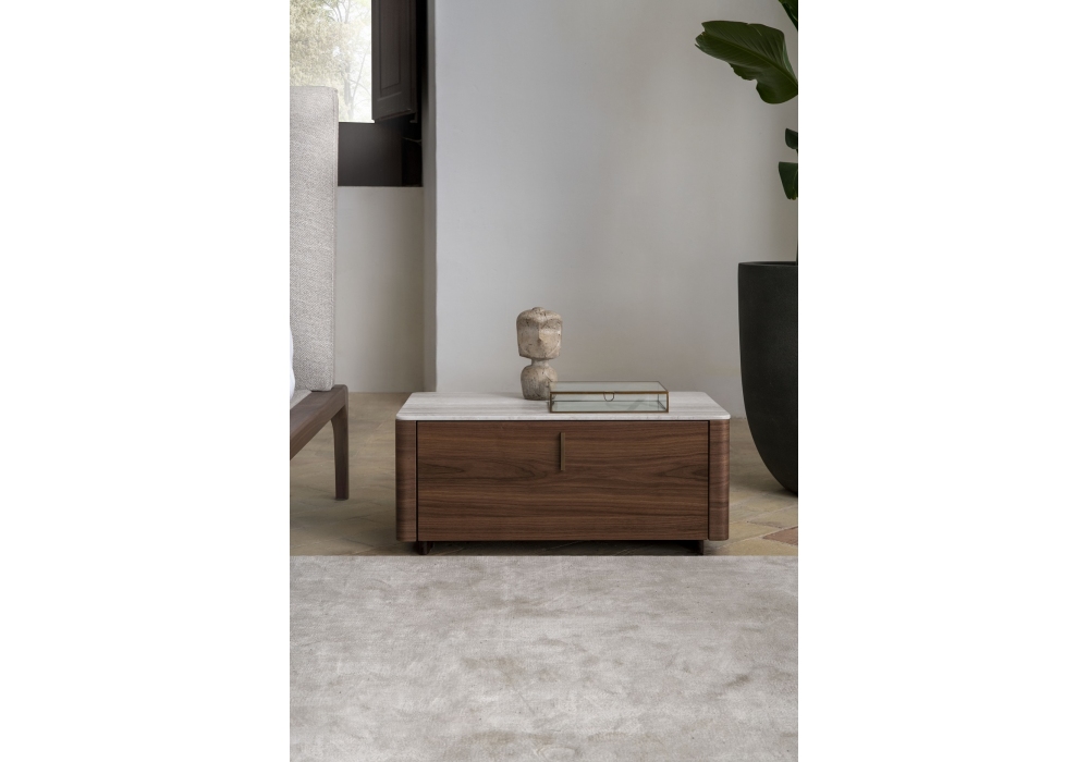Nuage firmato da Joe Garzone per Conte Casa è un comodino realizzato con struttura in legno e piano in marmo, vetro o in legno in tinta con la struttura. Disponibile in diverse finiture e dimensioni.