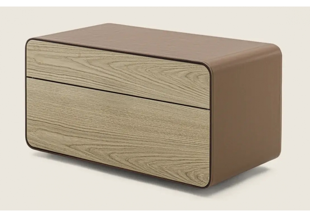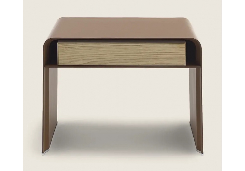 Clarence firmato da Antonio Citterio per Flexform è un comodino con struttura in metallo rivestito in cuoio, disponibile in diversi colori. Cassetti in legno. Piedi in metallo con feltrini. Disponibile in diversi modelli.