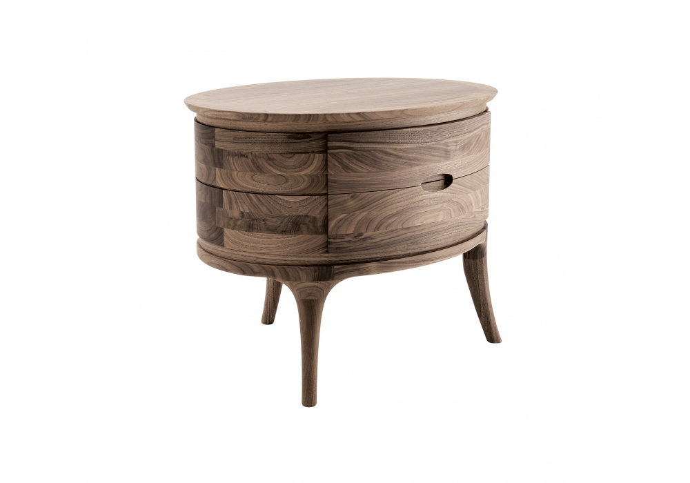 Ainda di Ceccotti Collezioni è un comodino con due cassetti realizzato in massello di noce americano.