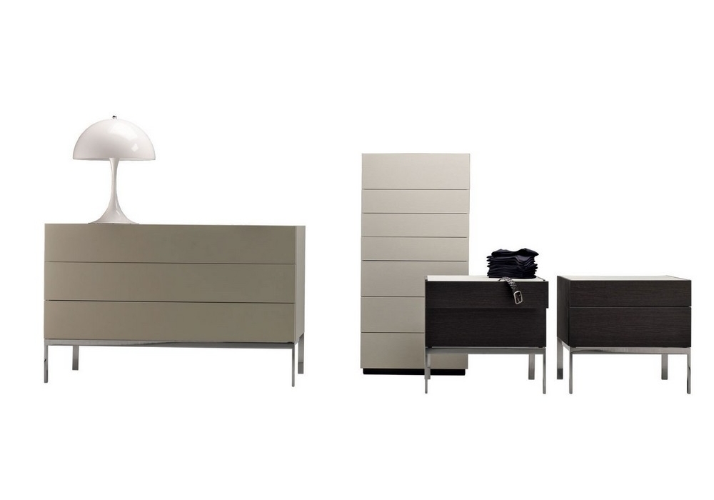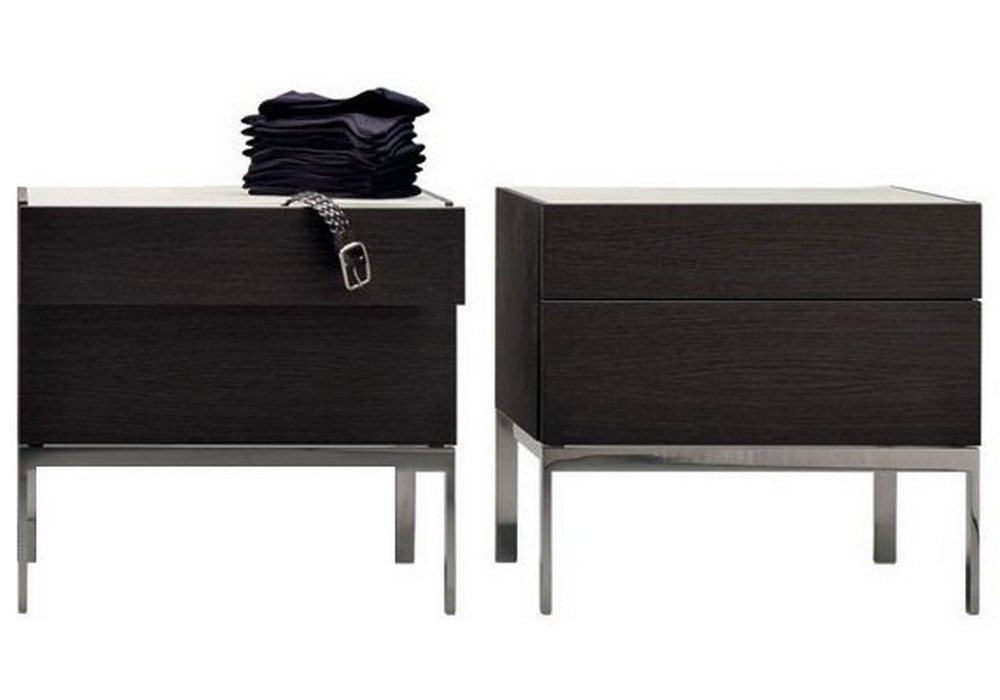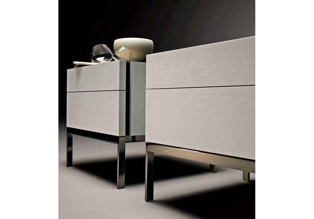 606 firmato da Rodolfo Dordoni per Molteni&C è un comodino con struttura laccata o in essenza e piano in vetro acidato. Base a cavalletto con finitura cromata.