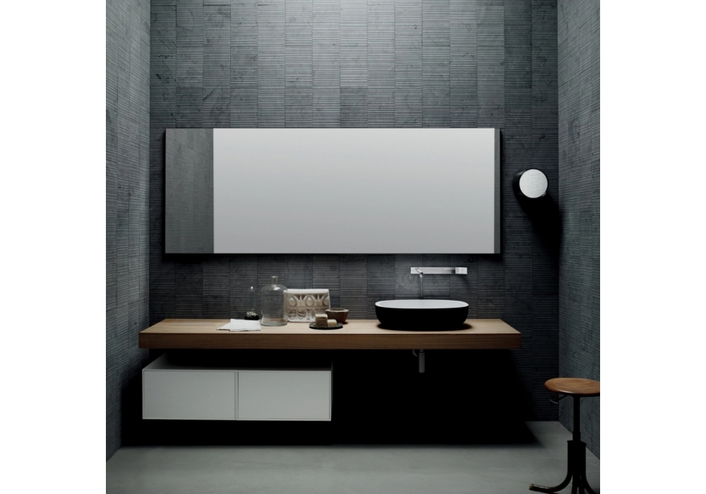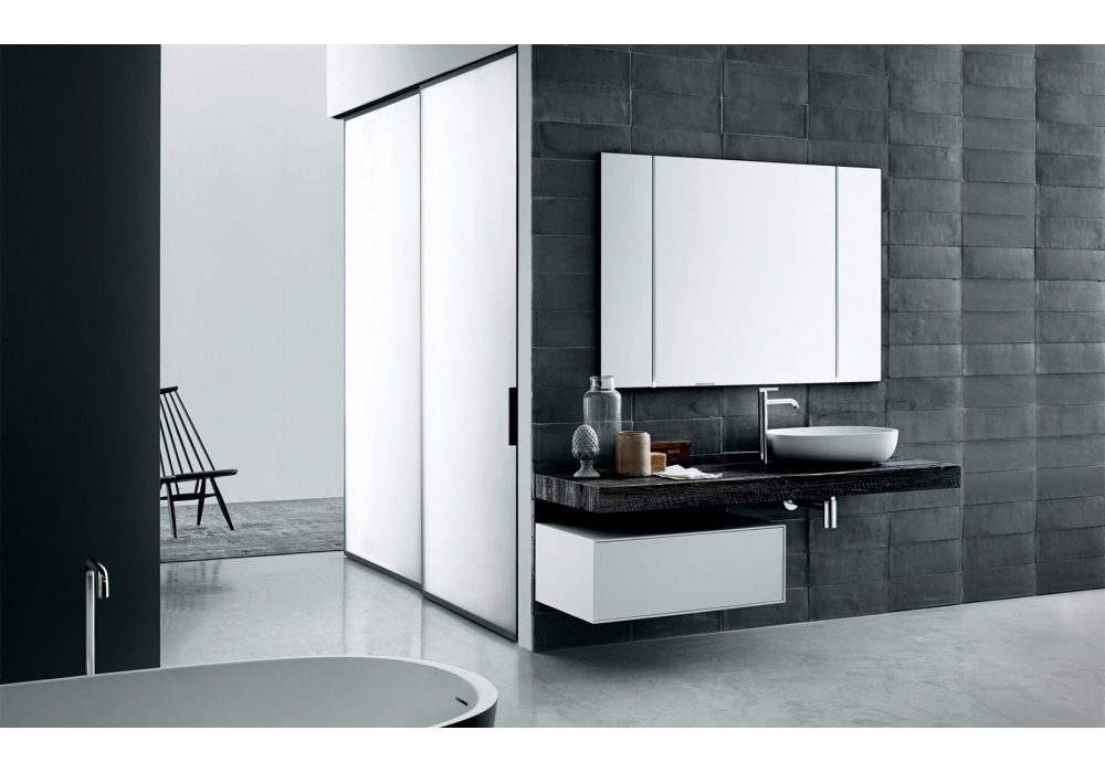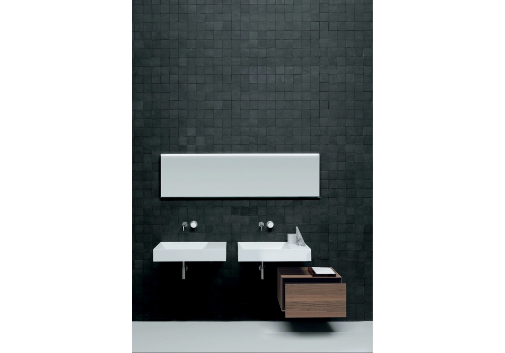 Flyer firmato da CRS Boffi è un sistema bagno di piani sospesi e cassettiere di contenimento sospese. Disponibile in differenti finiture.