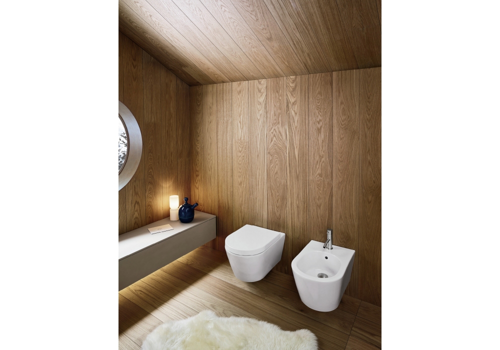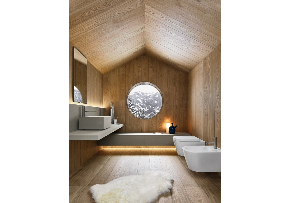 Sintesi 19.04 firmato da Michele Marcon per Noorth è un sistema bagno realizzato con lavabo in appoggio in cristalplant con finitura esterna in argilla Polvere. Top sospeso, alzatina con illuminazione a LED superiore, basi con apertura push-pull e top in argilla polvere. Sanitari in ceramica lucida e rubinetteria in acciaio inox satinato. Specchiera inclusa.