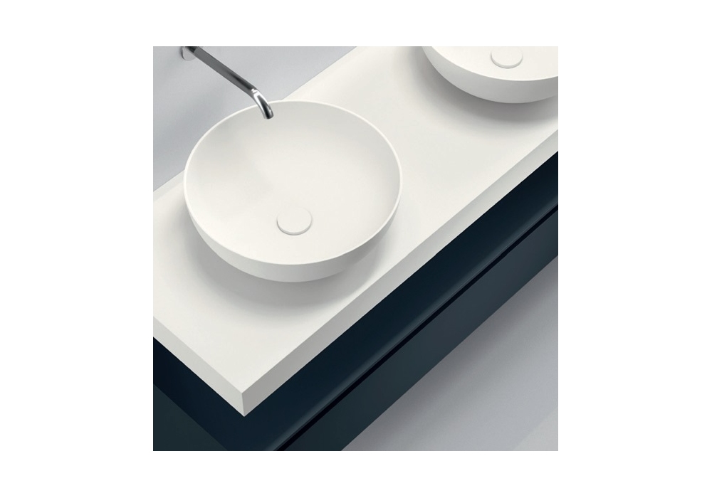 Sintesi 19.05 firmato da Michele Marcon per Noorth è un sistema bagno realizzato con lavabi in appoggio in ceramilux matt, top sospeso in Cristalplant. Basi con gola superiore, top e fianchi in laccato zaffiro opaco. Specchiere , lampade a LED e rubinetteria in acciaio inox satinato.