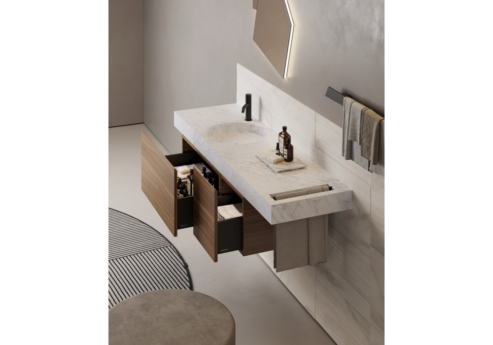 Fortepiano firmato da Antonio Lupi è un sistema di piani in marmo massello che unisce forza materica e purezza formale. Un progetto che trasforma la pietra in una superficie continua, scolpita con lavabi integrati tondi, ovali, quadrati o rettangolari, dove l’acqua sembra modellare la materia stessa. Fortepiano può essere installato a mensola o integrato con i mobili Antonio Lupi, creando un dialogo raffinato tra texture e colori. Essenziale, potente, elegante: un nuovo modo di interpretare il marmo come protagonista assoluto dello spazio bagno.