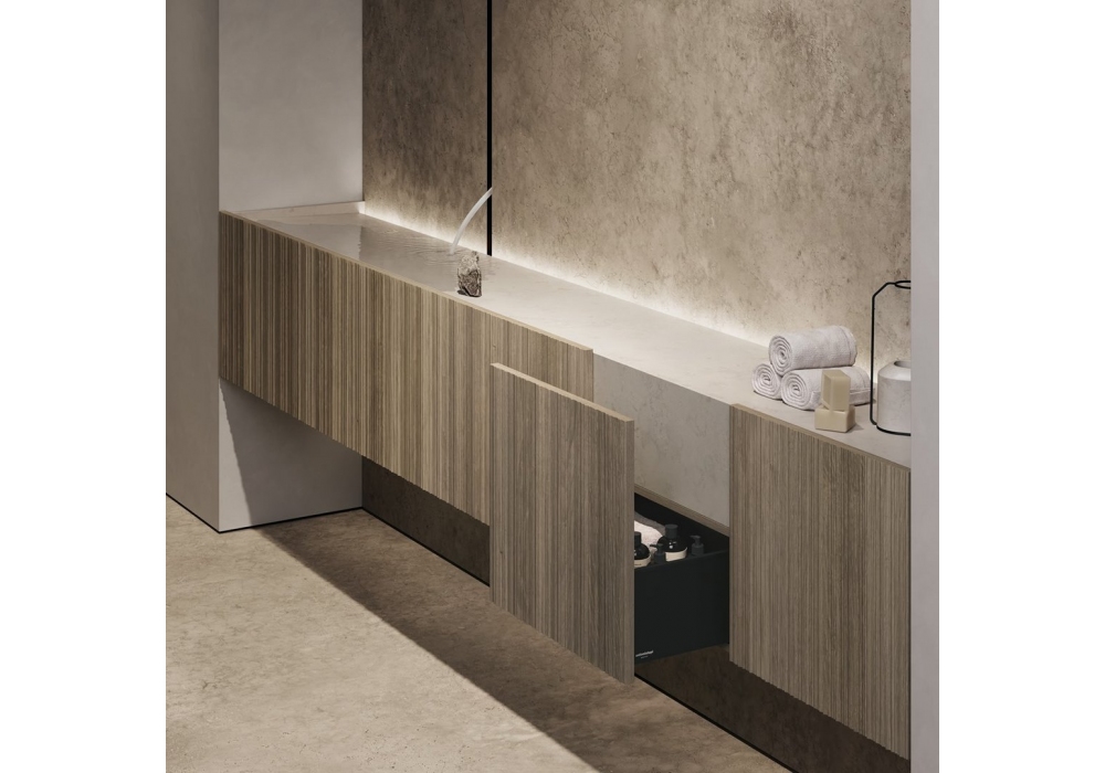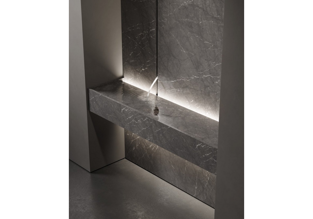 Lineadacqua firmato da Giorgio Rava per Antonio Lupi è un sistema innovativo che ridefinisce l’area lavabo attraverso un segno essenziale: un taglio verticale nel muro da cui sgorga l’acqua con forza e purezza. Un progetto che unisce tecnologia invisibile e poesia formale, dove un “sasso” di marmo funge da manopola discreta per regolare il flusso. Lineadacqua trasforma il gesto quotidiano in un’esperienza sensoriale, riportando l’uomo all’origine, alla forza primordiale dell’acqua e alla sua essenza rigenerante.