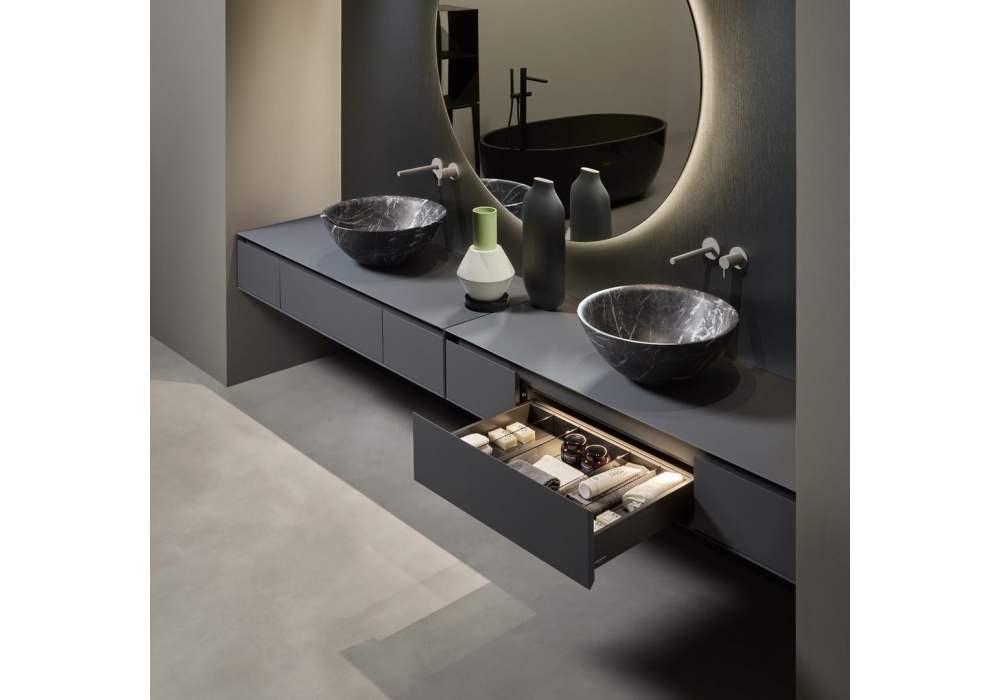 Panta Rei firmato da Carlo Colombo per Antonio Lupi è un sistema modulare per l’ambiente bagno che unisce la preziosità del legno, il calore delle essenze e la perfezione dei laccati. Una collezione in cui la materia diventa design, in un equilibrio armonioso tra funzionalità ed estetica. Ogni elemento è pensato per dialogare con le forme dei lavabi e interpretare lo spazio in modo fluido e contemporaneo, ridefinendo il concetto di bagno come ambiente senza confini.
