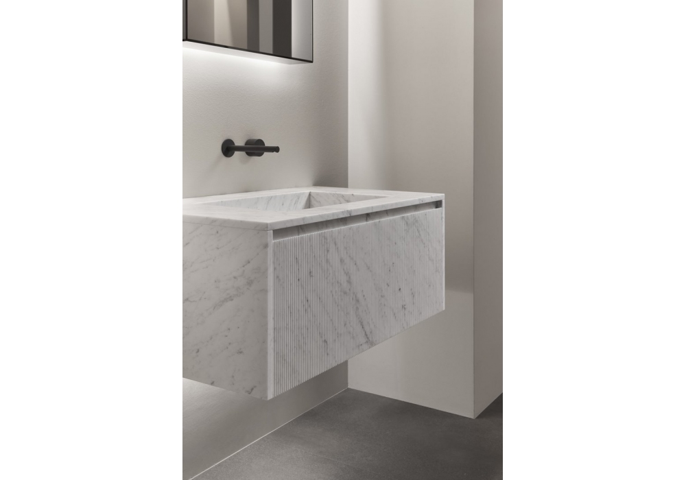 Piana_Stone firmato da Nevio Tellatin per Antonio Lupi è un sistema modulare in pietra che unisce design essenziale e funzionalità. La versione in pietra valorizza l’eccellenza del materiale, con le declinazioni del marmo e le sue sfumature naturali, rendendo straordinaria la semplicità del progetto. Il nucleo tecnico modulare permette molteplici combinazioni dimensionali, mentre la gola integrata semplifica l’apertura delle ante. Un design solido e senza tempo, capace di armonizzarsi con gli spazi e diventare protagonista discreto al tempo stesso.