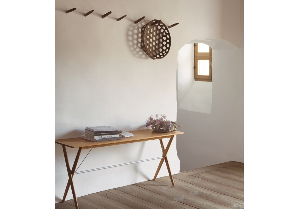 Console firmato da DePadova è una scrivania con struttura in massello di rovere naturale o color wengé. Tiranti e trave inferiore in acciaio color alluminio o nero. Disponibile in differenti dimensioni.