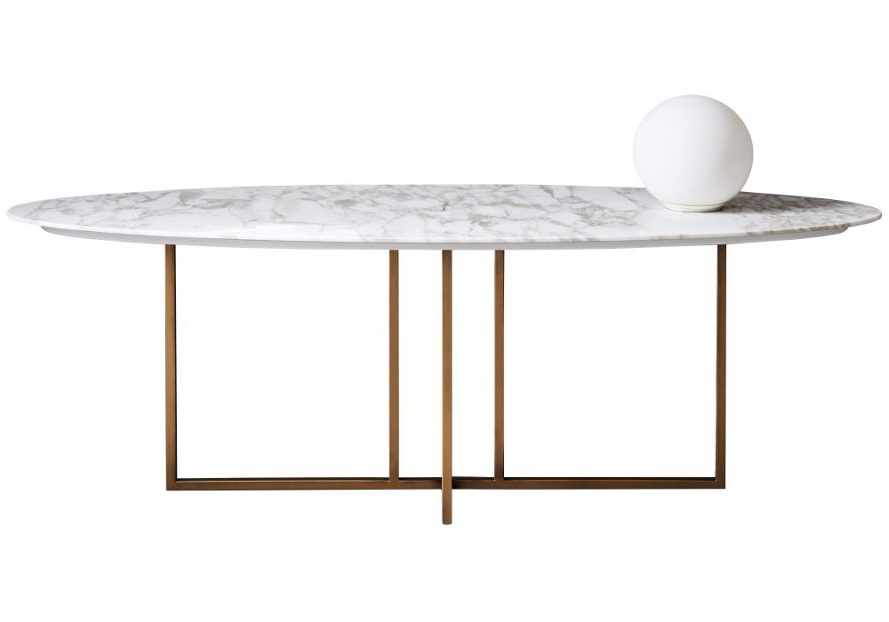 Cole firmata da Andrea Parisio per Meridiani è una consolle che presenta una basamento in metallo verniciato ottone bronzato o opaco black e piano in laccato opaco o lucido, marmo o legno. Piano disponibile nel modello ovale o biscuit.