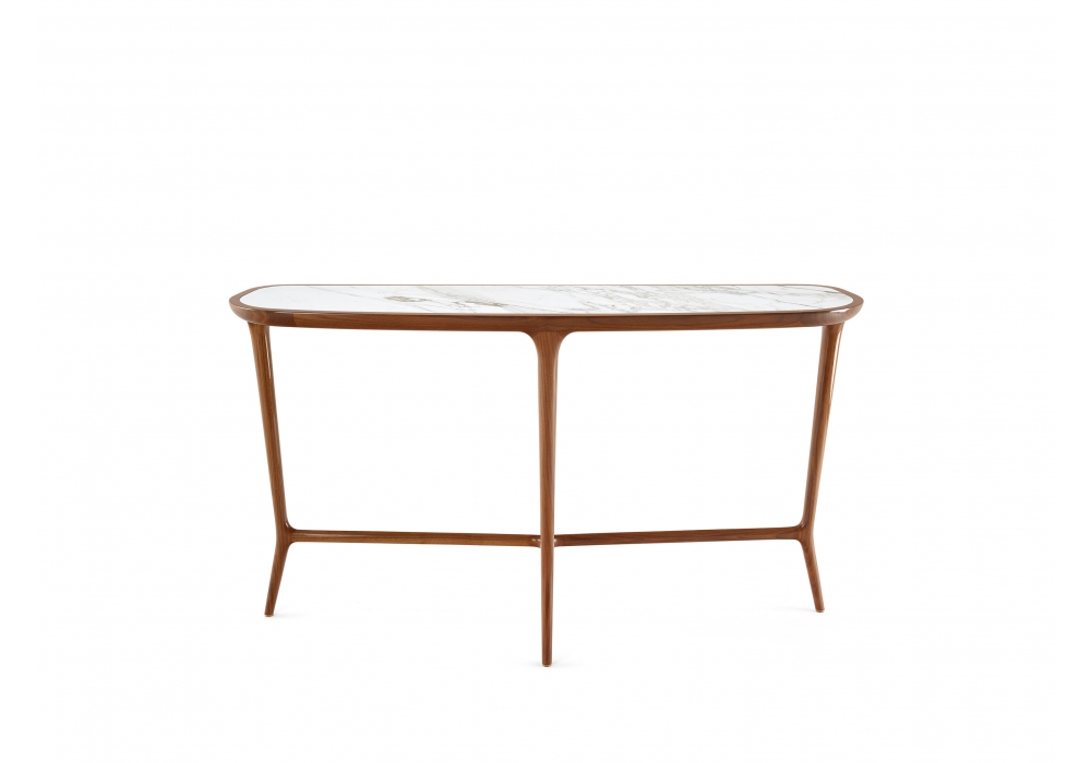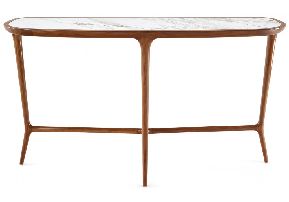 Elegy firmata da Roberto Lazzeroni per Ceccotti Collezioni è una consolle da fissare a parete realizzata in legno massello di noce americana e piano in legno o marmo.