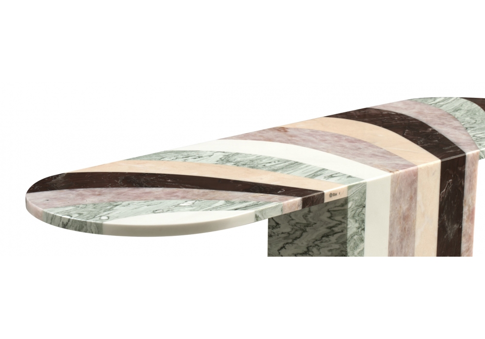 Marea firmata da Patricia Urquiola per Budri è una consolle realizzata con intarsi artistici di preziosi marmi nelle tonalità di rosa.