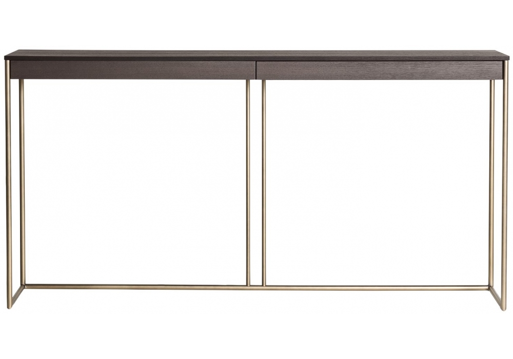 Ella firmata da David Lopez Quinconces for Lema è una consolle con piano e cassetti in legno, naturale o laccato e struttura in metallo finitura bronzo patinato.