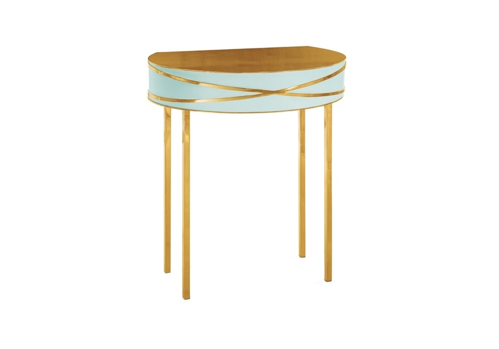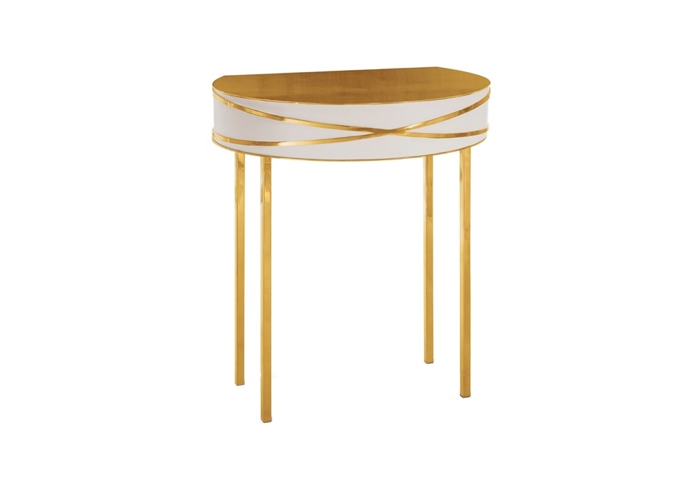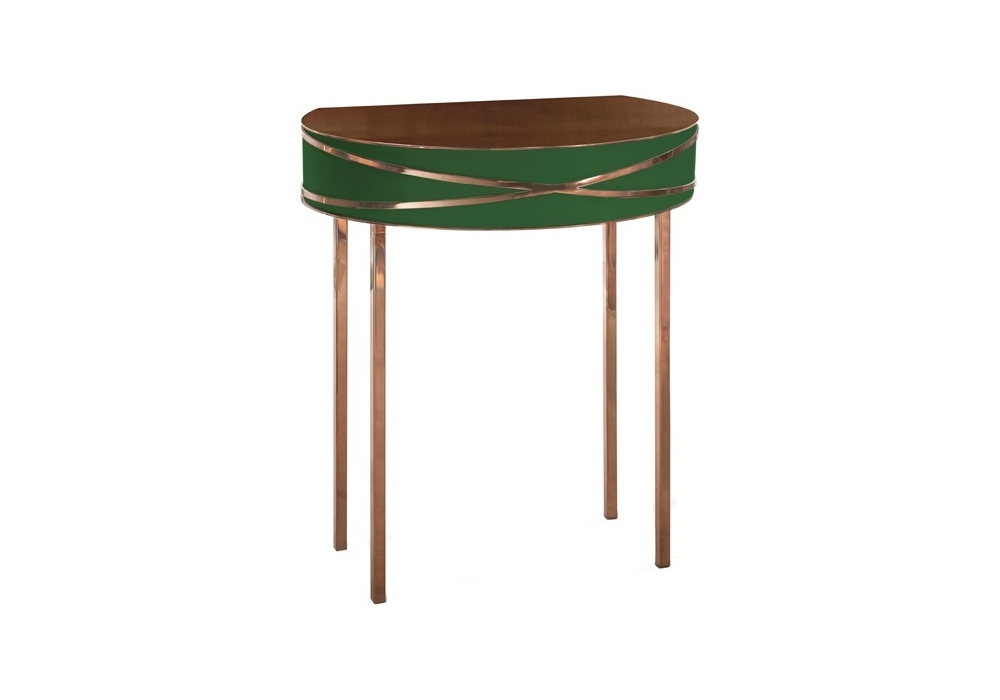 Stella firmata da Nika Zupanc per Scarlet Splendour è una consolle realizzata in MDF e compensato con struttura metallica in oro o oro rosa. Disponibile in diverse finiture.