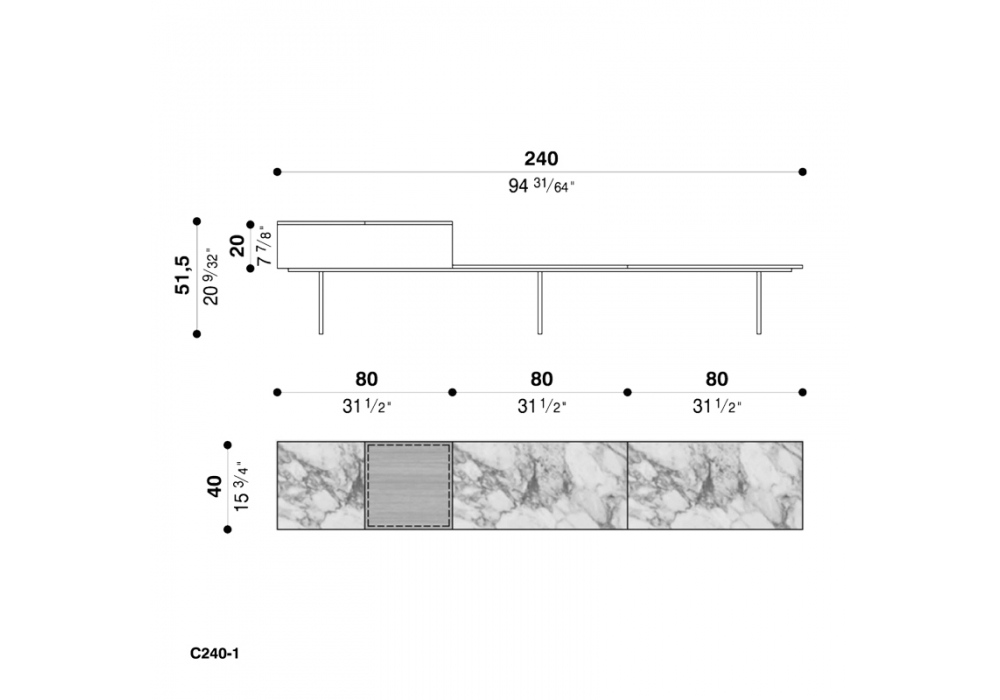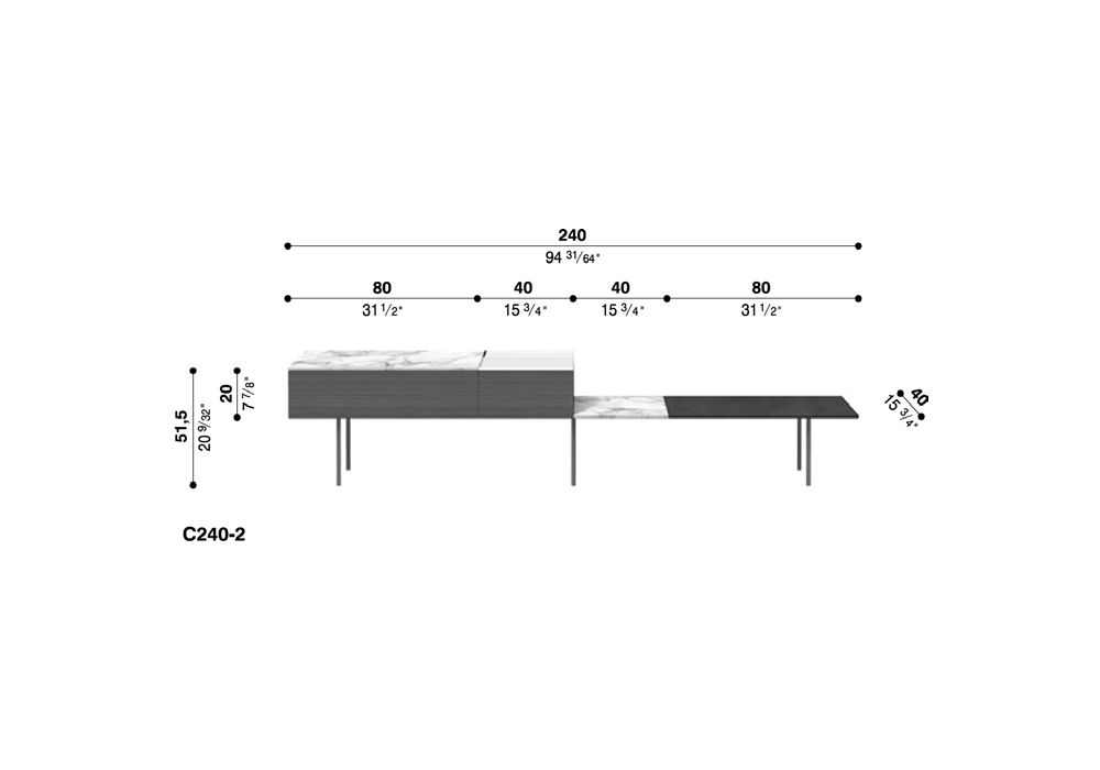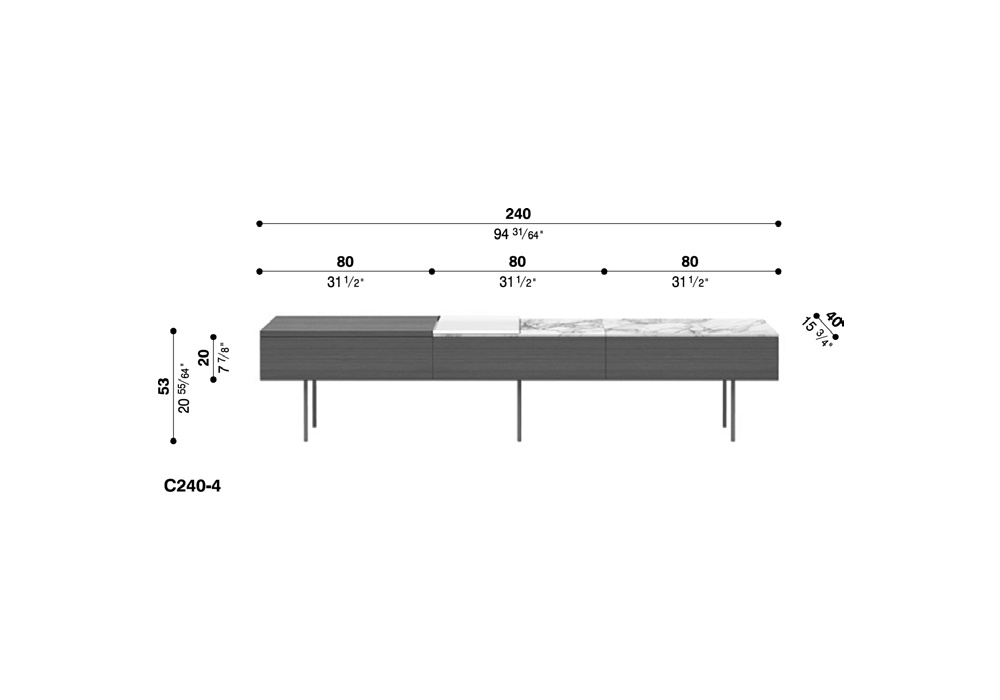 Moodboard Console firmata da Massimo Mariani per Acerbis è una consolle bassa modulare con piedi verniciati grigio scuro opaco, piano in legno o marmo, e vassoio di servizio disponibile nelle finiture acciaio lucido o ottone. La struttura è nella stessa finitura del piano in legno scelto.