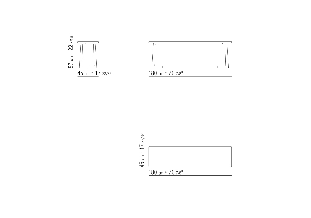 | Dimensioni | • 180 x 45 x H 57 cm |