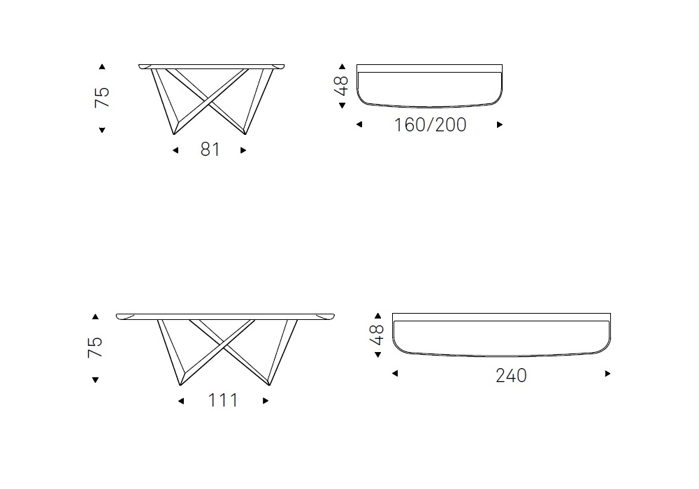 | Dimensioni | 160 x 48 x H 77 cm; 200 x 48 x H 77 cm; 240 x 48 x H 77 cm. |