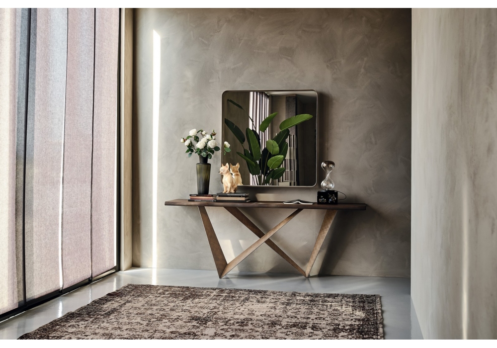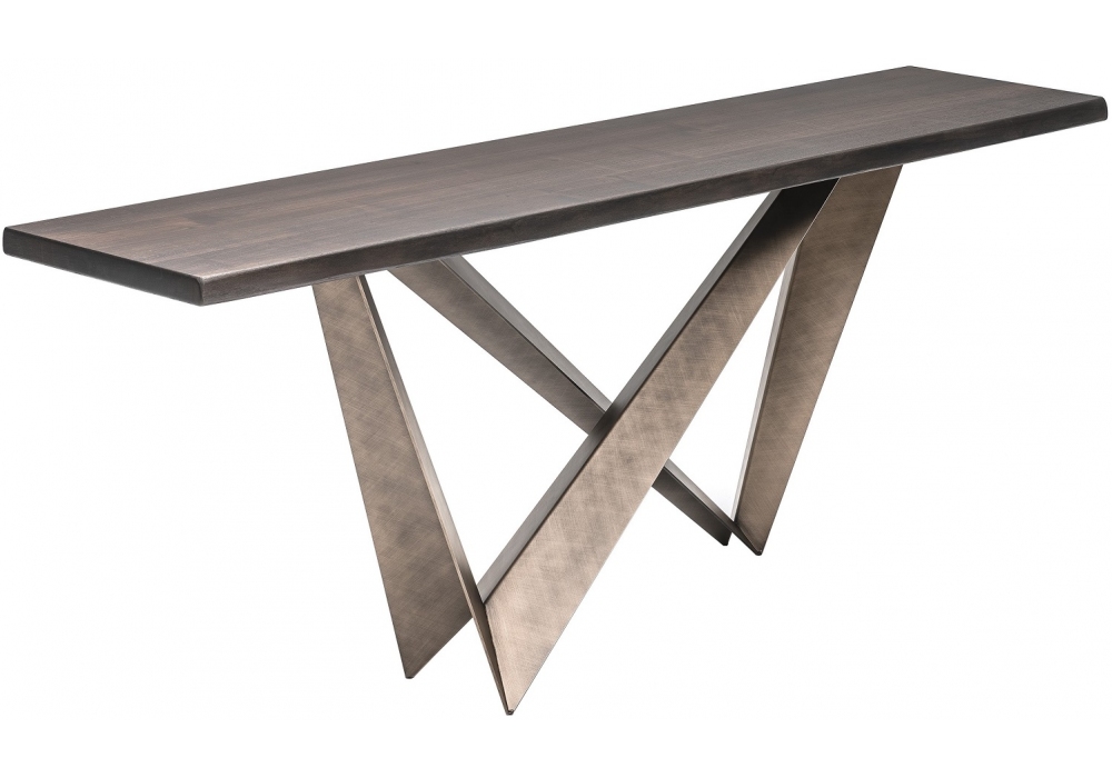 Westin firmata da Giorgio Cattelan per Cattelan Italia è una consolle realizzata con piano in legno con bordo irregolare e base in acciaio laccato.