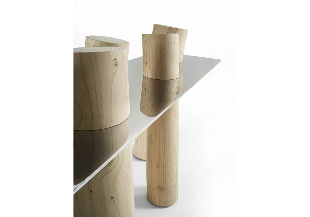 Venice Cedro firmata da Claudio Bellini per Riva 1920 è una consolle caratterizzata da top in acciaio lucido o in vetro abbinato ad una serie di pali realizzati in legno massello di cedro. Disponibile in diverse dimensioni.