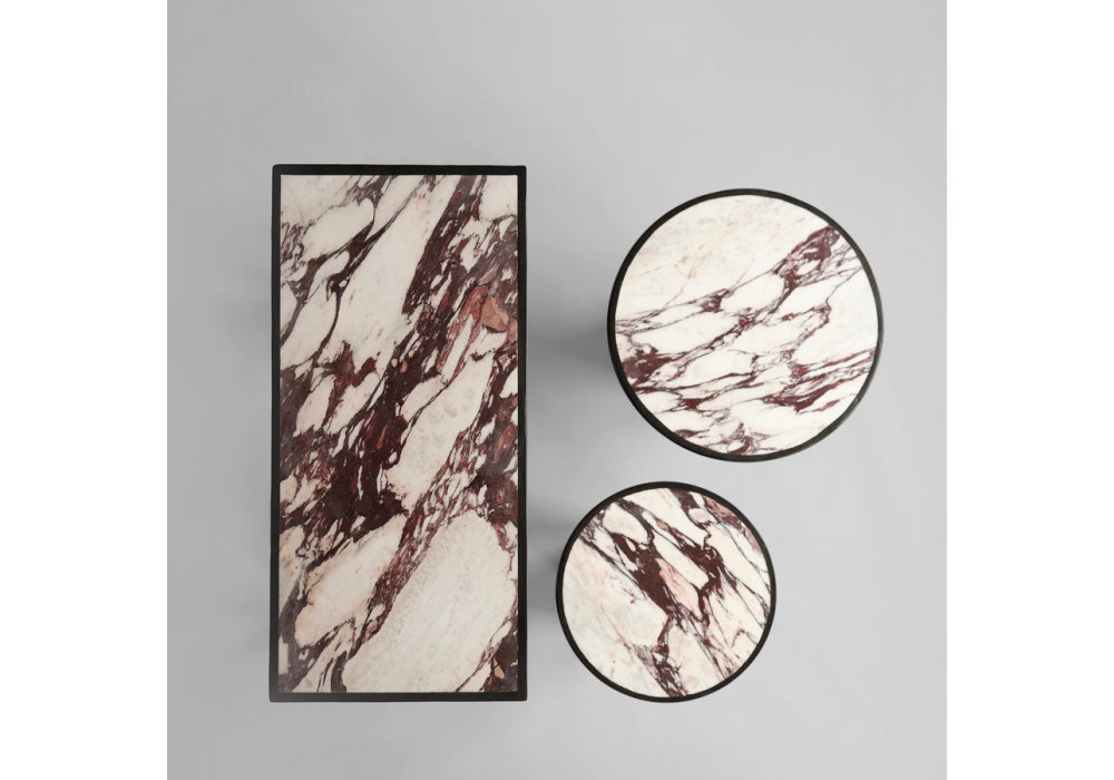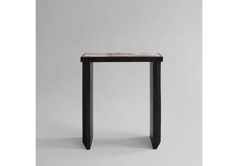 Arc firmata da Kristian Sofus Hansen & Tommy Hyldahl per 101 Copenhagen è una consolle realizzata in fibra di cemento nella finitura caffè, piano in marmo Calacatta.
