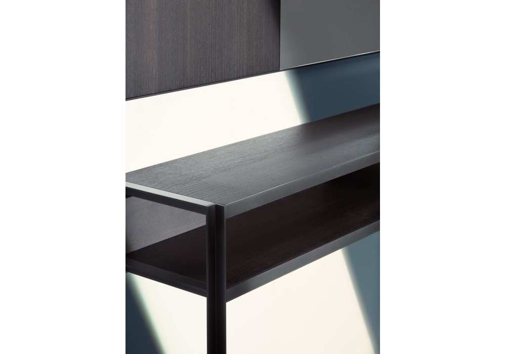 Lina firmata da Squire & Partners per Lema è una consolle con una struttura aerea e un top sottile, con e senza cassetti, può essere corredata da una parete attrezzata o da un grande specchio a parete. Disponibile in differenti finiture.