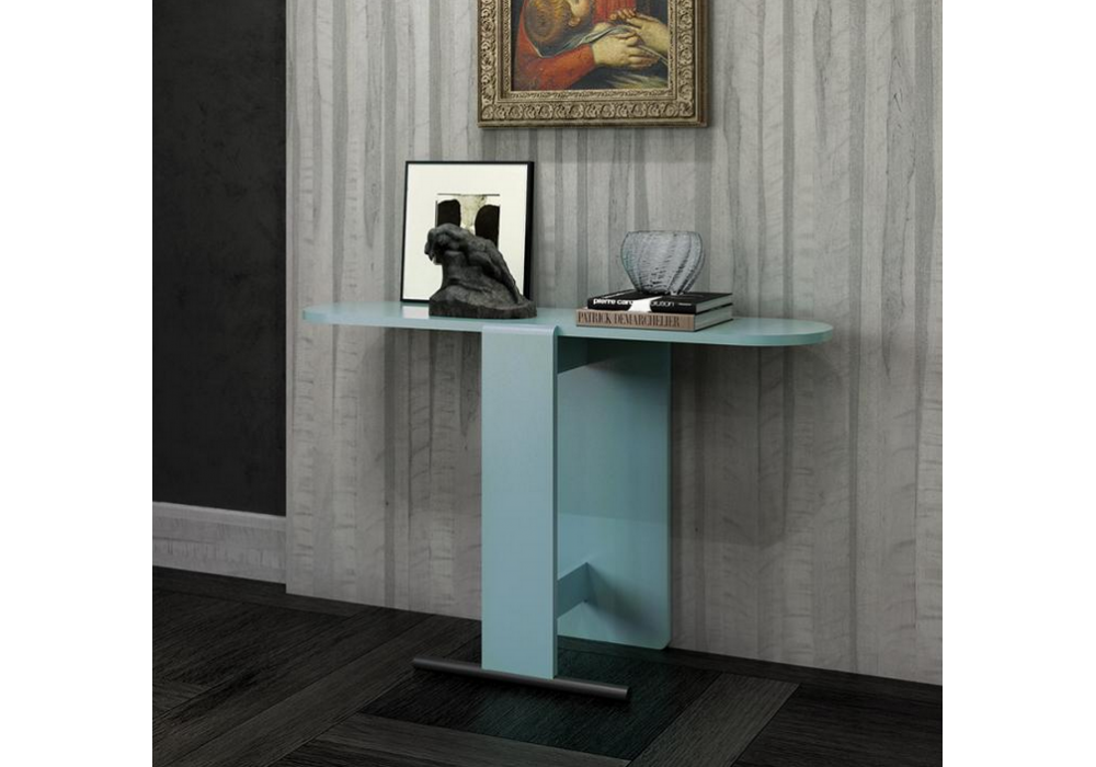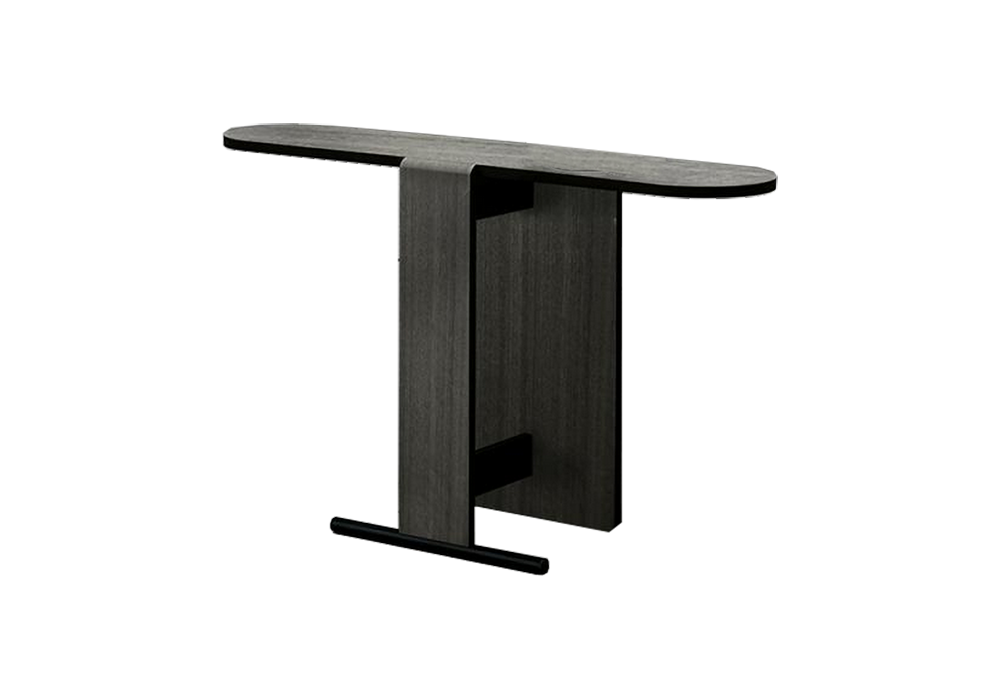 Elephant firmata da Pietro Russo per Casamilano è una consolle con struttura in pannelli di particelle di legno rivestita in essenza o laccata lucida o opaca. Tubo base in metallo verniciato nero opaco.