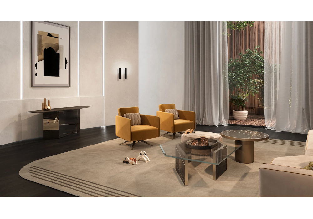 Cubitum firmata da Riccardo Lucatello per Reflex Angelo è una consolle realizzata con base in legno con bordi finitura Bronze. Interno: lato lungo in specchio bronzo, lato corto in Marmoreflex. Esterno: lato corto in specchio bronzo, lato lungo in Marmoreflex.