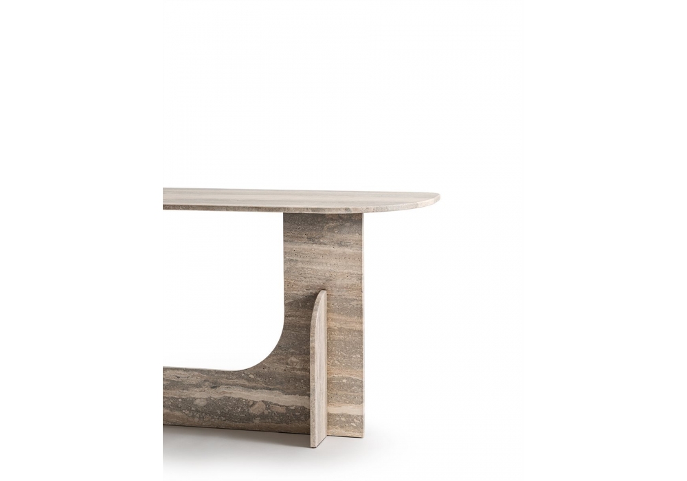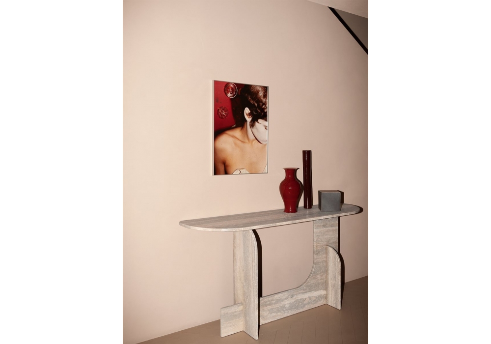 Selce firmata da Studiopepe per Gallotti&Radice è una consolle in pietra, disponibile in diverse finiture e dimensioni. Parti metalliche laccate. Si consiglia posizionamento a parete.