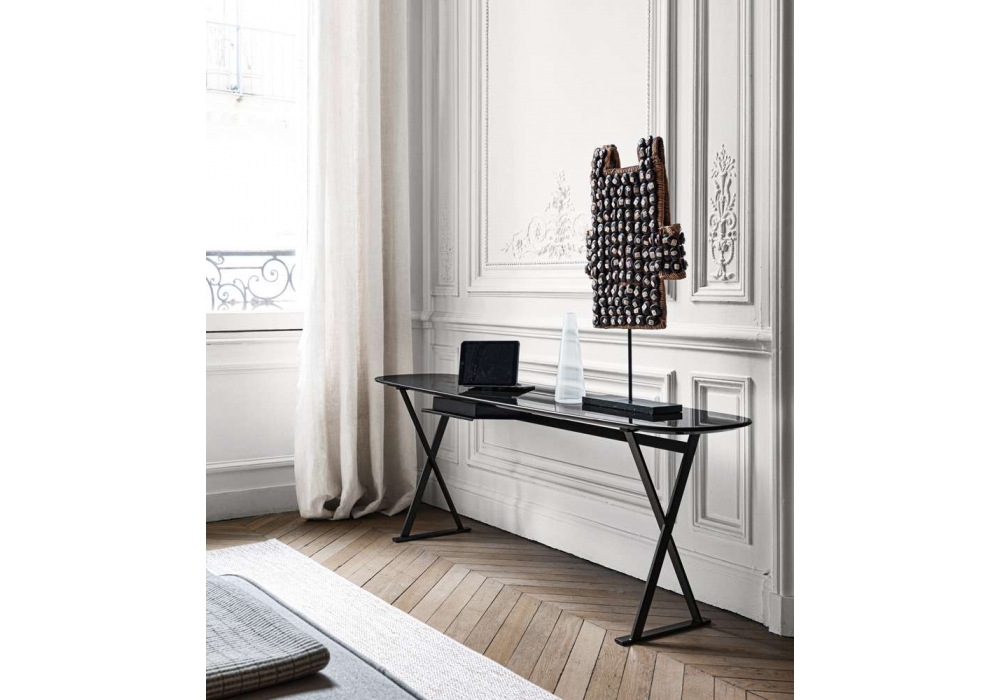 Pathos firmata da Antonio Citterio per Maxalto è una consolle con piano in legno mdf laccato lucido. Struttura in acciaio disponibile nelle seguenti finiture: cromato lucido, verniciato nickel bronzato, finitura rame.