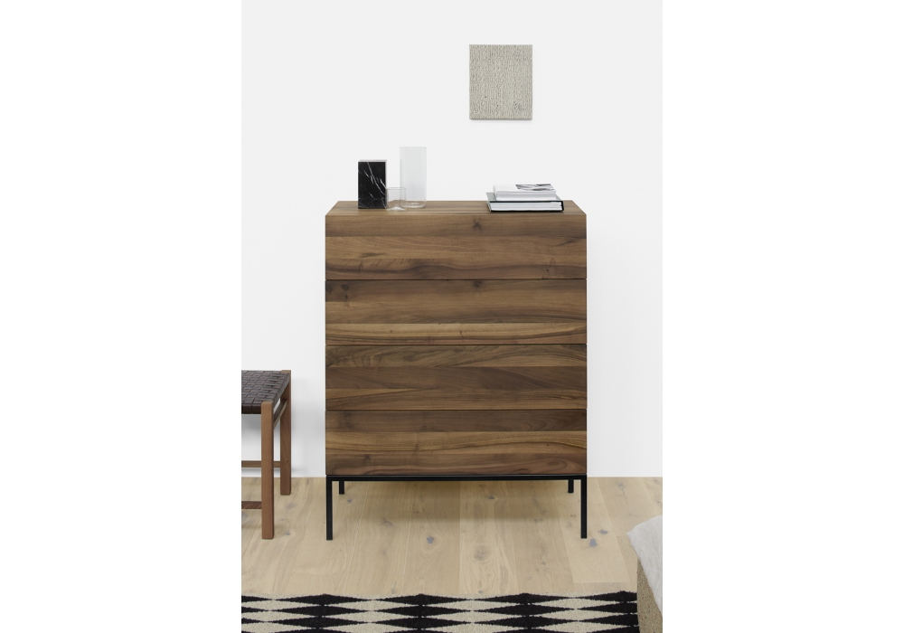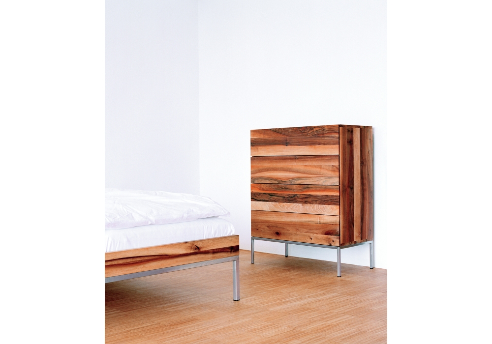SB04 Fatima firmata da Philipp Mainzer per E15 è una cassettiera realizzata in legno massello con struttura in acciaio. Fatima è un elegante e raffinato pezzo di arredo che mette in evidenza la combinazione del legno massello con il telaio in acciaio inox senza soluzione di continuità. I lati dei cassetti hanno uno smusso end-to-end che opera da impugnatura. Disponibile in due finiture di legno.