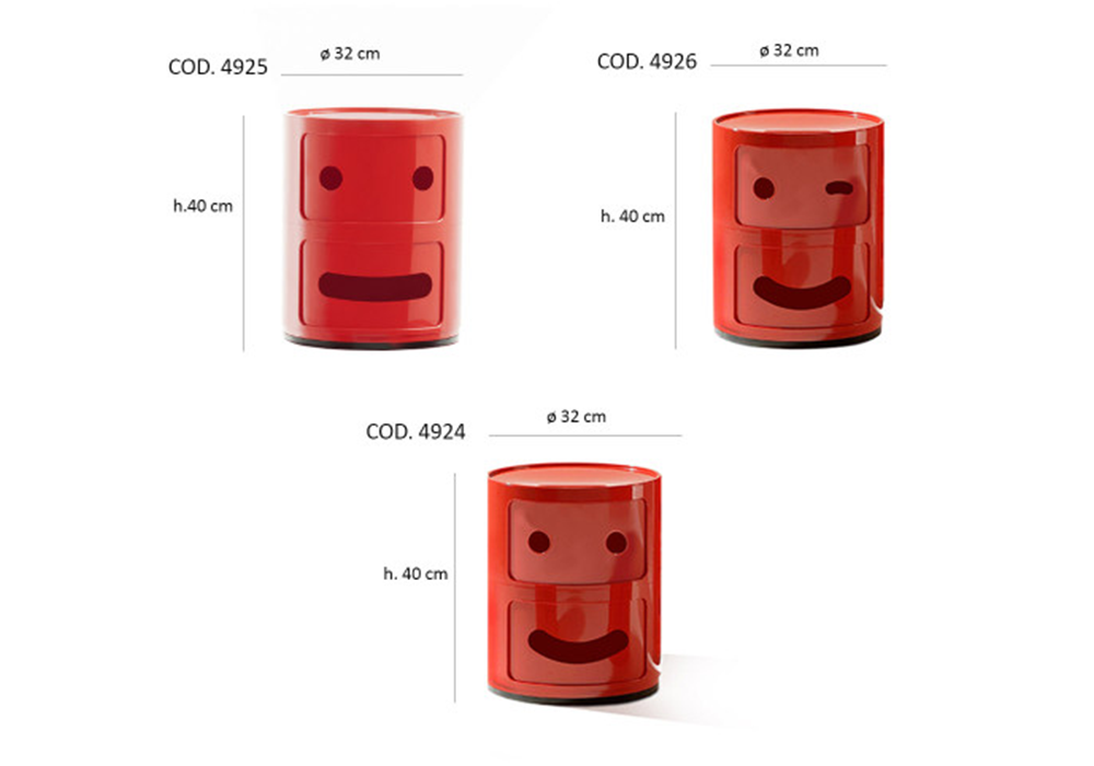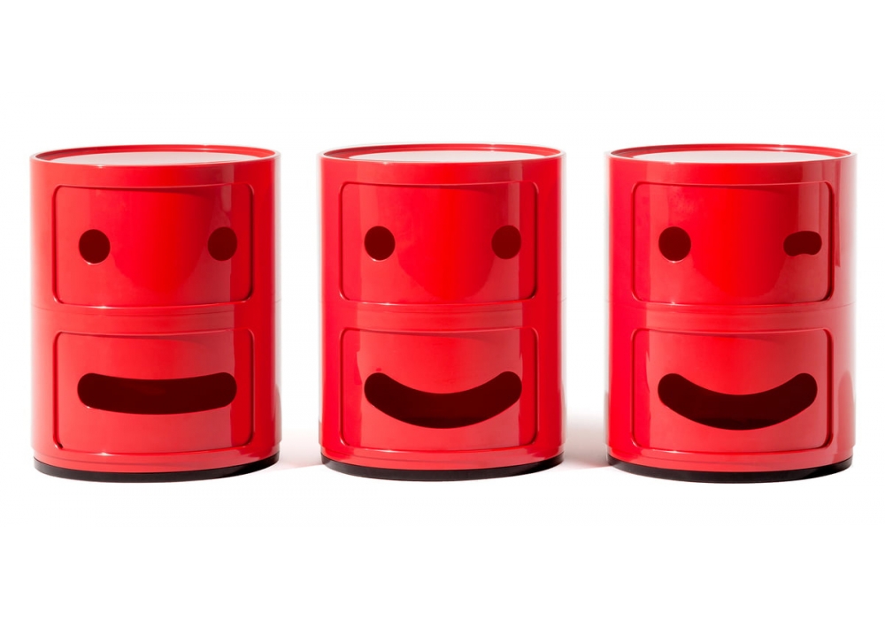 Componibili Smile firmato da Fabio Novembre per Kartell è un mobile contenitore in plastica ABS rossa disponibile in tre modelli.