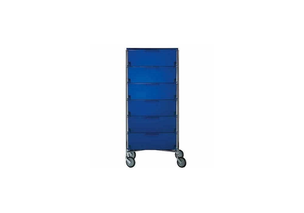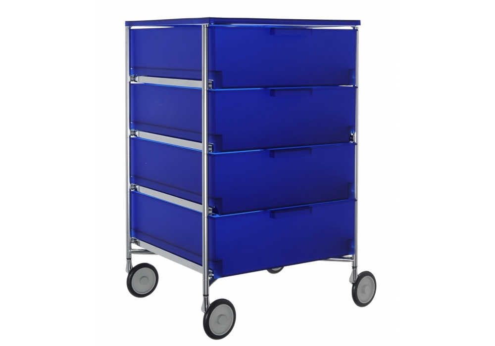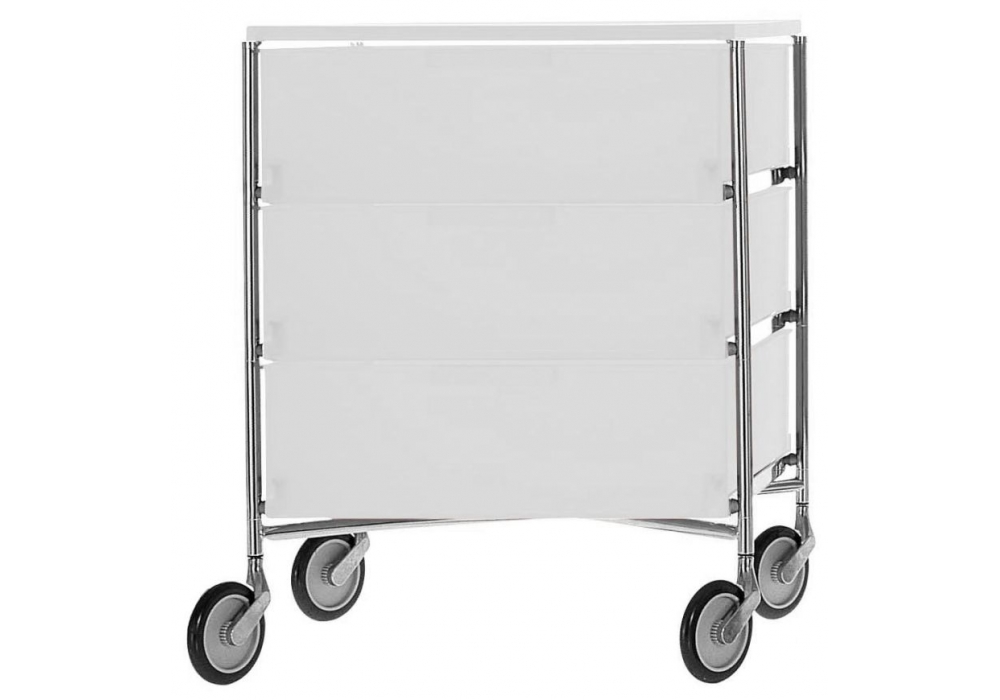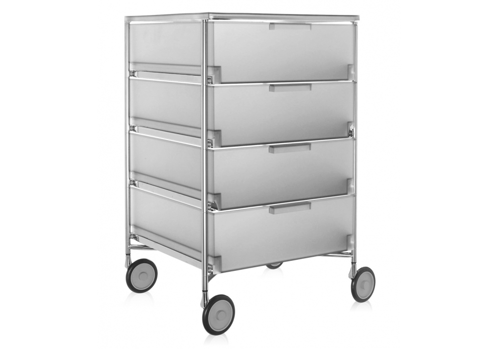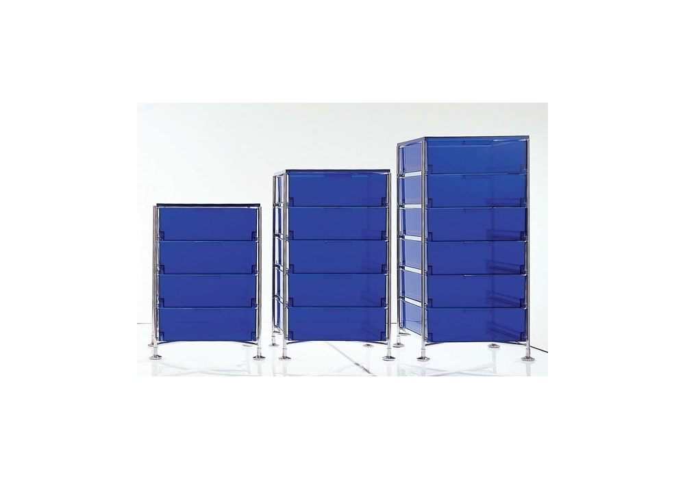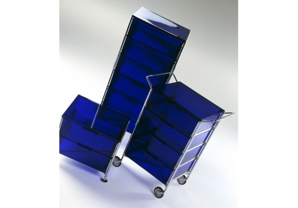 Mobil firmata da Antonio Citterio & Oliver Löw per Kartell è una collezione di contenitori realizzati con struttura in acciaio cromato e cassetti e ripiani in PMMA antiurto trasparente o verniciato antigraffio. Disponibile in diverse finiture e dimensioni.