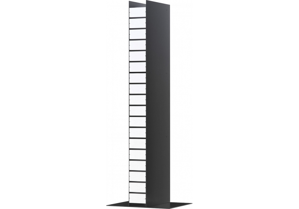 Dinah firmata da Shiro Kuramata per Cappellini è una cassettiera realizzata con struttura della base in lamiera metallica finitura nero opaco e cassetti laccati bianco opaco.