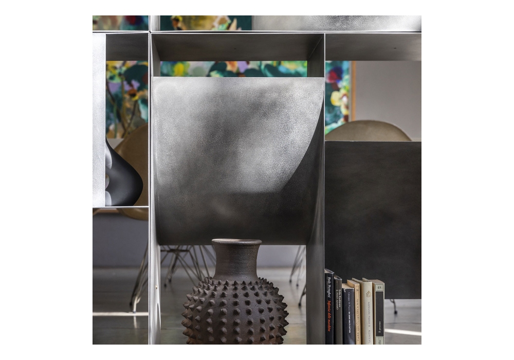 Judd Base firmato da Alessandro Di Prisco per Mogg è un contenitore fronte-retro in metallo. Disponibile in diverse finiture e dimensioni. E’ possibile fissarlo in 4 posizioni diverse ruotandolo sia in orizzontale che in verticale. Zoccolo di colore nero completo di piedini regolabili in 4 dimensioni da abbinare in base al numero di moduli.