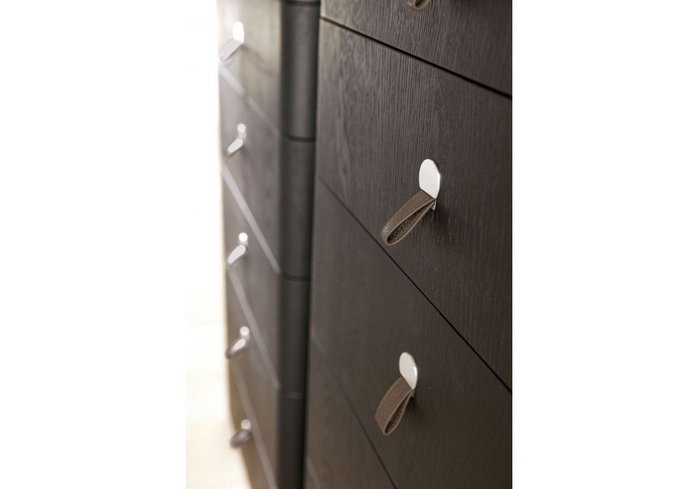 Kube firmato da Giuseppe Bavuso per Alivar è un settimanale realizzato con struttura in rovere verniciato o termotrattato o in MDF laccato opaco. Top in pietra acrilica rivestita in pelle. Cassetti con guide metalliche frenanti. Frontale in rovere verniciato o termotrattato o in MDF laccato opaco. Maniglie in pelle.