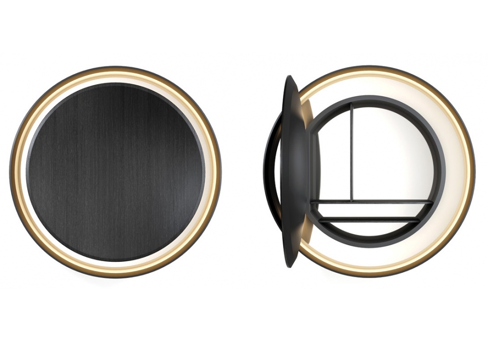 Eclissi firmato da Elena Pancaldi per Emmemobili è un mobile contenitore con struttura in legno laccato lucido nero e anta esterna in rovere sabbiato tinto nero. Disponibile la versione incassata a parete o da fissare a muro.